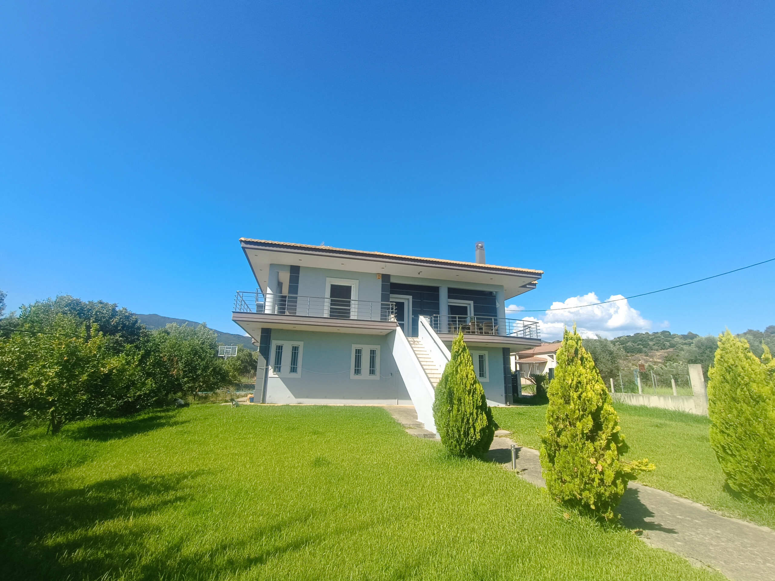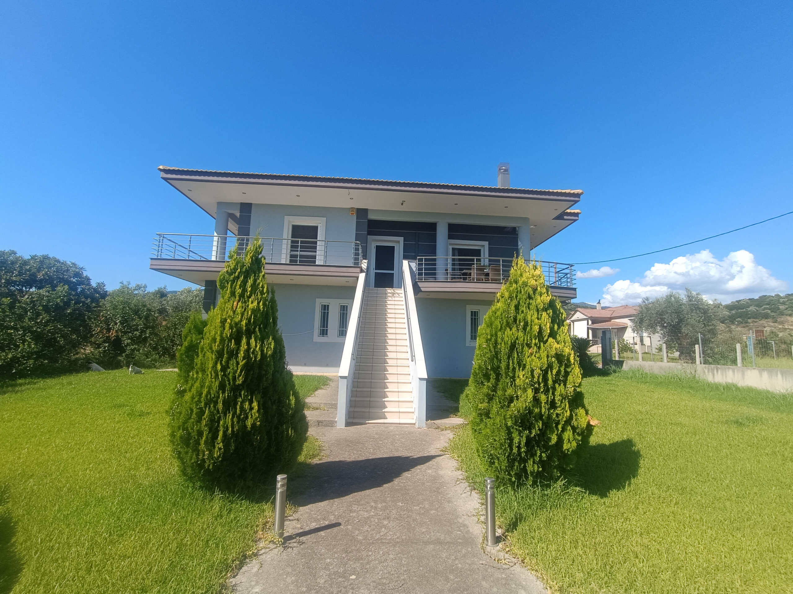Messolonghi- Detached house for sale 408 sq.m. Plot: 1,875.95 sq.m. Ground floor: 175.93 sq.m. 1st floor: 157.03 sq.m. Attic 75 sq.m. Building Permit: 2008, consists of 4 bedrooms, 2 bathrooms, solar water heater, autonomous oil heating, fireplace, automatic lawn irrigation system, basketball court, garden with 20 olive trees with autonomous irrigation system. Distances 10 km from the sea, 4 km from the center of Messolonghi, 8.5 km from Messolonghi Flying Club, 6 km from Messolonghi Port and Marina. Suitable for golden visa. ENCE under issuance.